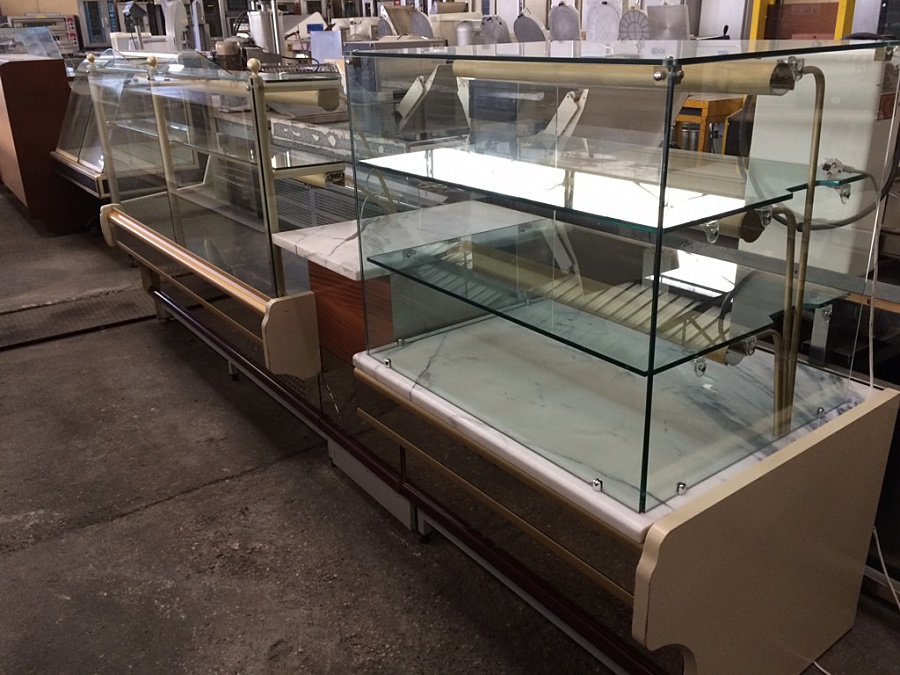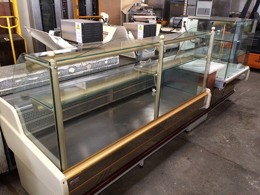 * 1 vitrine réfrigérée 2m - 2 étagères de présentation en verre non réfrigérée,